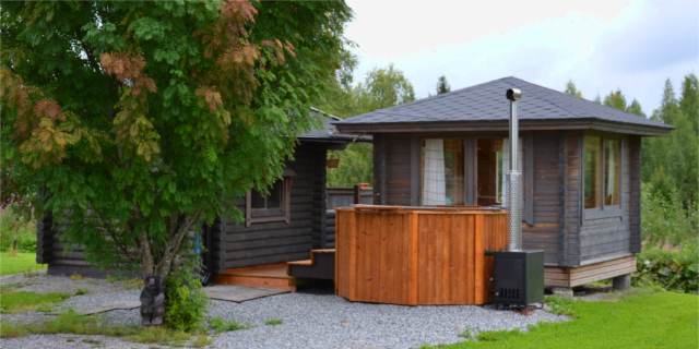 Saluunan välittömässä läheisyydessä on myös kotasauna, savusauna sekä palju. Pihapiiristä löytyy myös kolme aittaa majoitusta varten, sekä grillikatos ja kaksi kotaa.